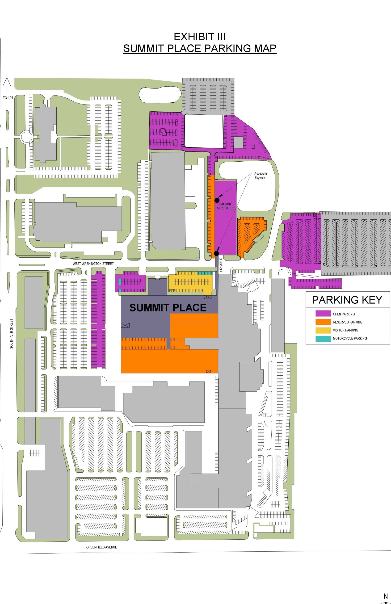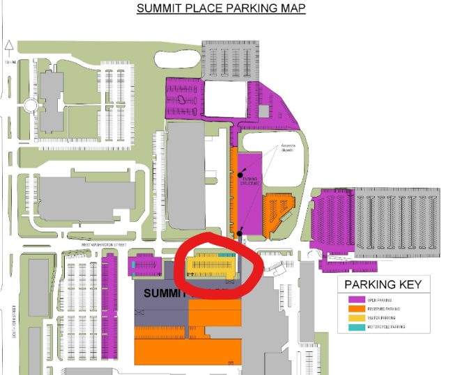 Visitors can use other surface parking areas east of the parking structure. The parking structure is restricted to building employees. Do not park in the large, mostly empty parking lot between Summit Place and 70th. This is a private parking lot not connected with Summit Place. If you park there you will get ticketed.